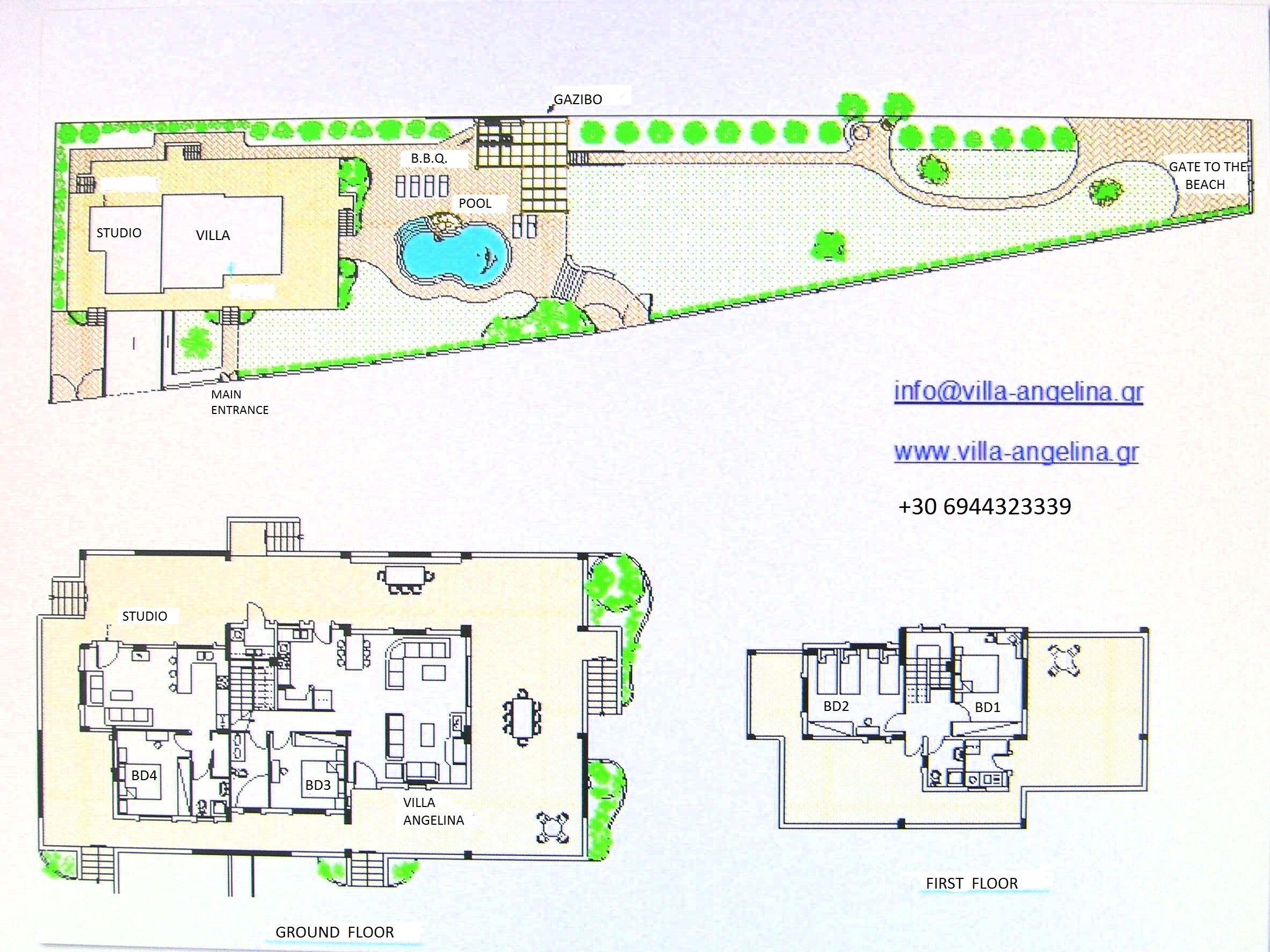 The villa is ideally located on the southeast coast of Rhodes and is only steps away from the beautiful clear blue waters of Lothiarika Beach which is an excellent spot for swimming. Also, you can find almost everything you need (taverns, bars, super markets, etc.) by walking distance (3-5 min walk). Well-kept gardens surround the villa and include, Barbecue area and facilities, gazebo (sheltered area) for relaxation, both adjoined to a private swimming pool with sunbeds.